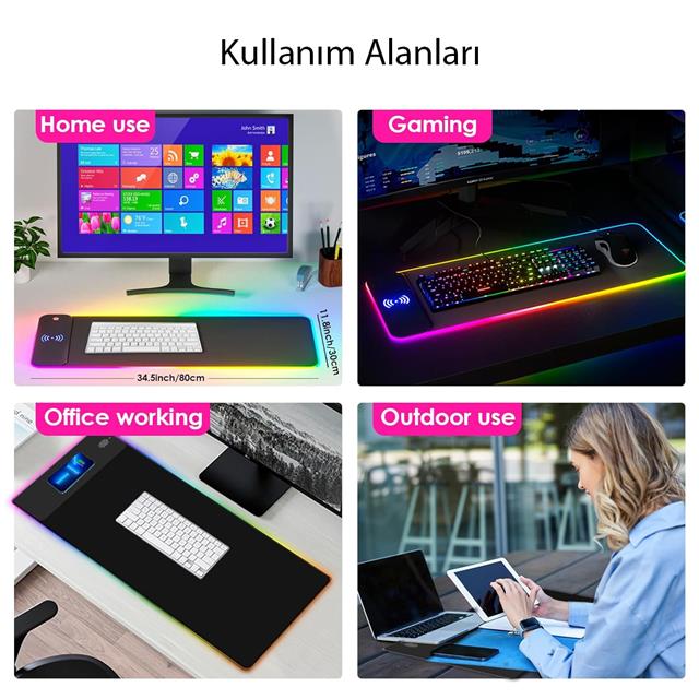 Powermaster Pm-25115 Xl Rgb Gaming Mouse Pad Wireless Telefon Şarj Destekli 14 Modlu