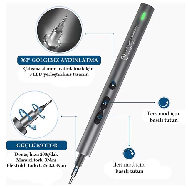 Powermaster Pm-28475 24 Uçlu Başlıklı Mini Şarjlı Tornavida Seti Yüksek Torklu Aydınlatmalı