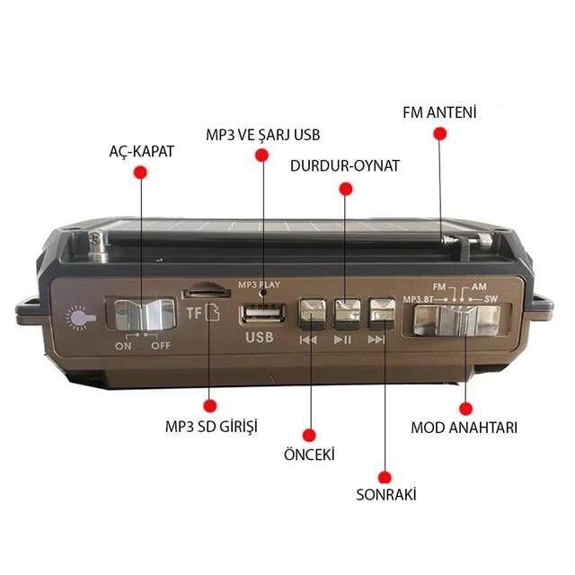 Puxing Px-777 Portatif Analog Radyo Fm-usb-sd-aux-bluetooth Lityum Pilli Solar Güneş Panelli