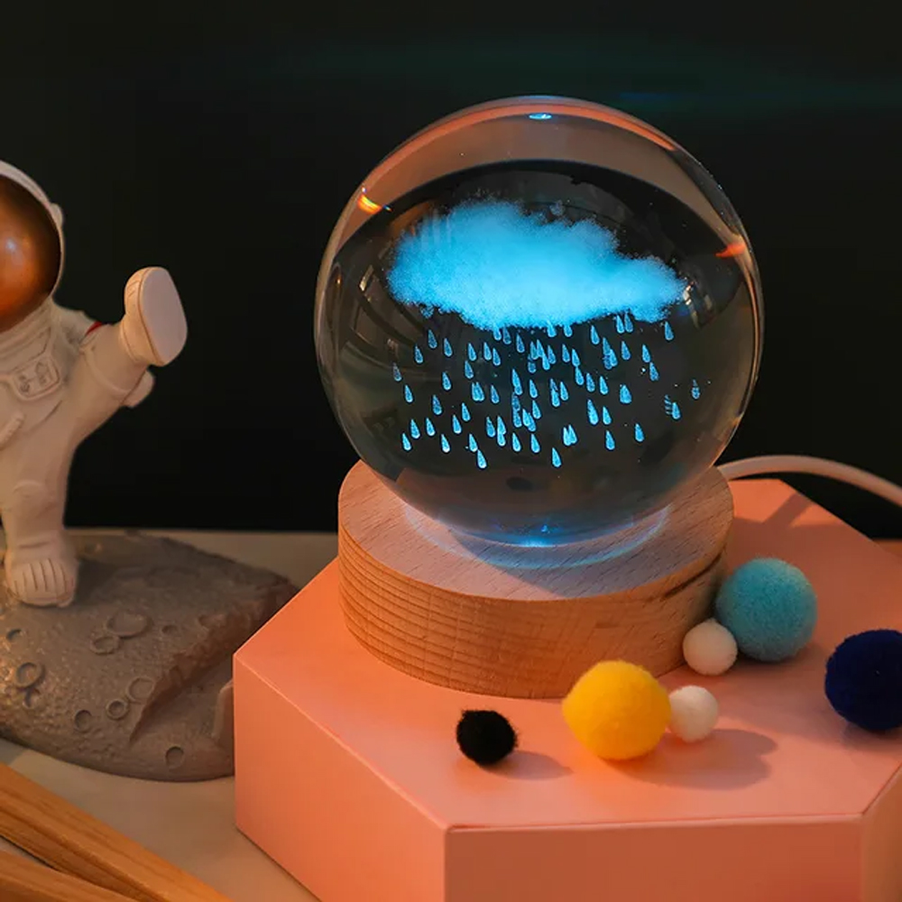 Renk Degistiren Yagmur Bulutu Tasarimli Cam Kure Anahtarlik