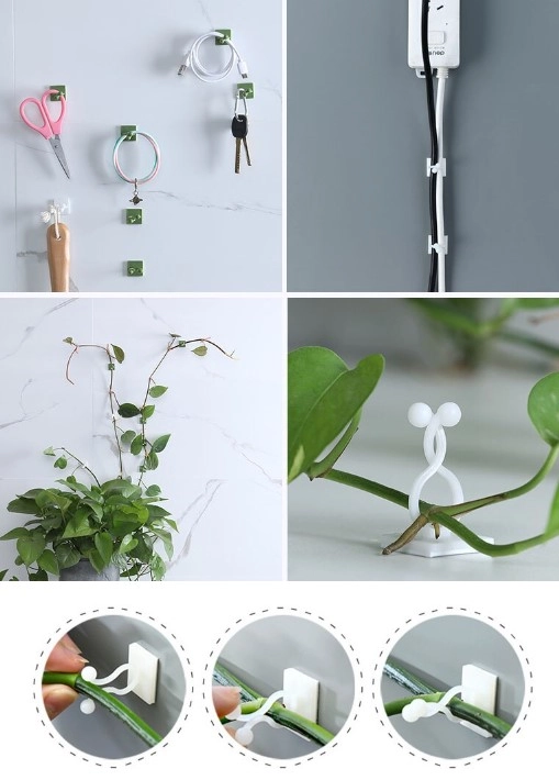 Bitki klipsleri, tırmanma bitkilerinin duvar problemine basit bir çözüm sunar ve orkideler gibi küçük ve orta ölçekli bitkiler için uygundur.