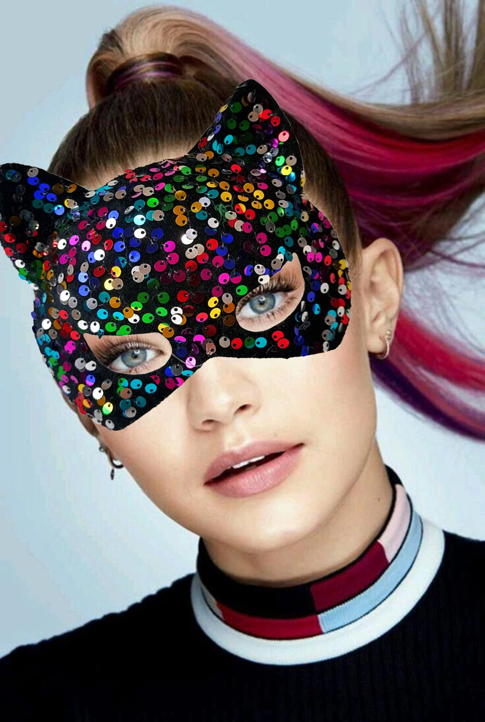 Ürün Adı: Siyah Kadife Kumaş Üzerine Rengarenk Payetli Pullu Parti Maskesi