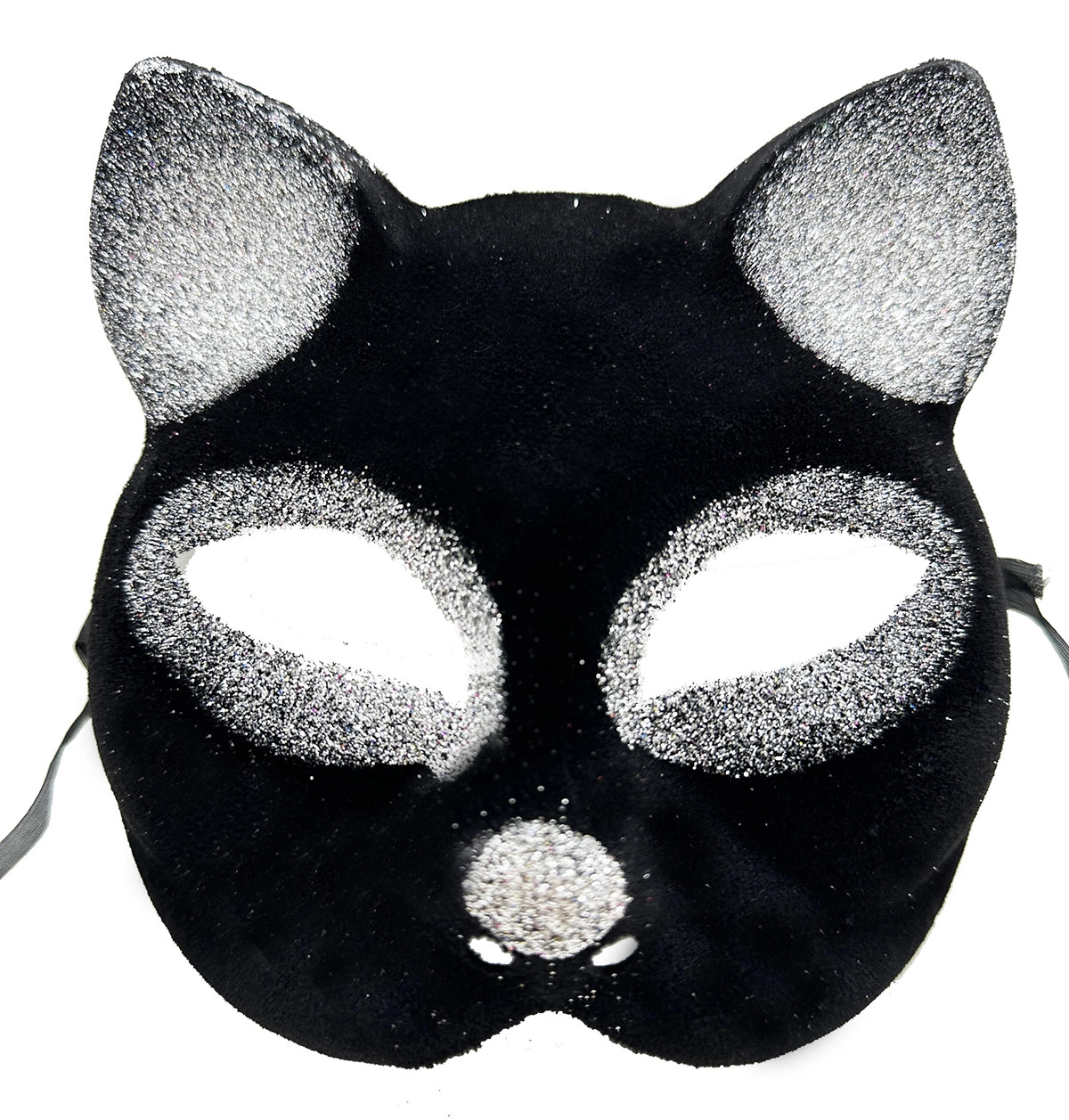 Siyah Renk Gümüş Simli Süet Kaplama Kedi Maskesi 18x14 cm