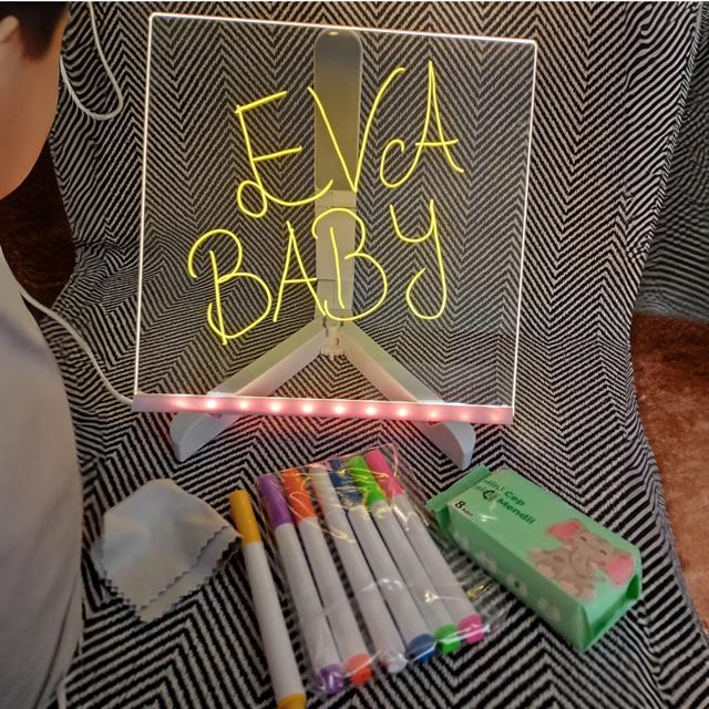 Sunup Sn-27128 Dekoratif Led Aydınlatmalı Şeffaf Işıltılı Yazı - Çizim Panosu Tableti - 7 Renk Kalemli Set