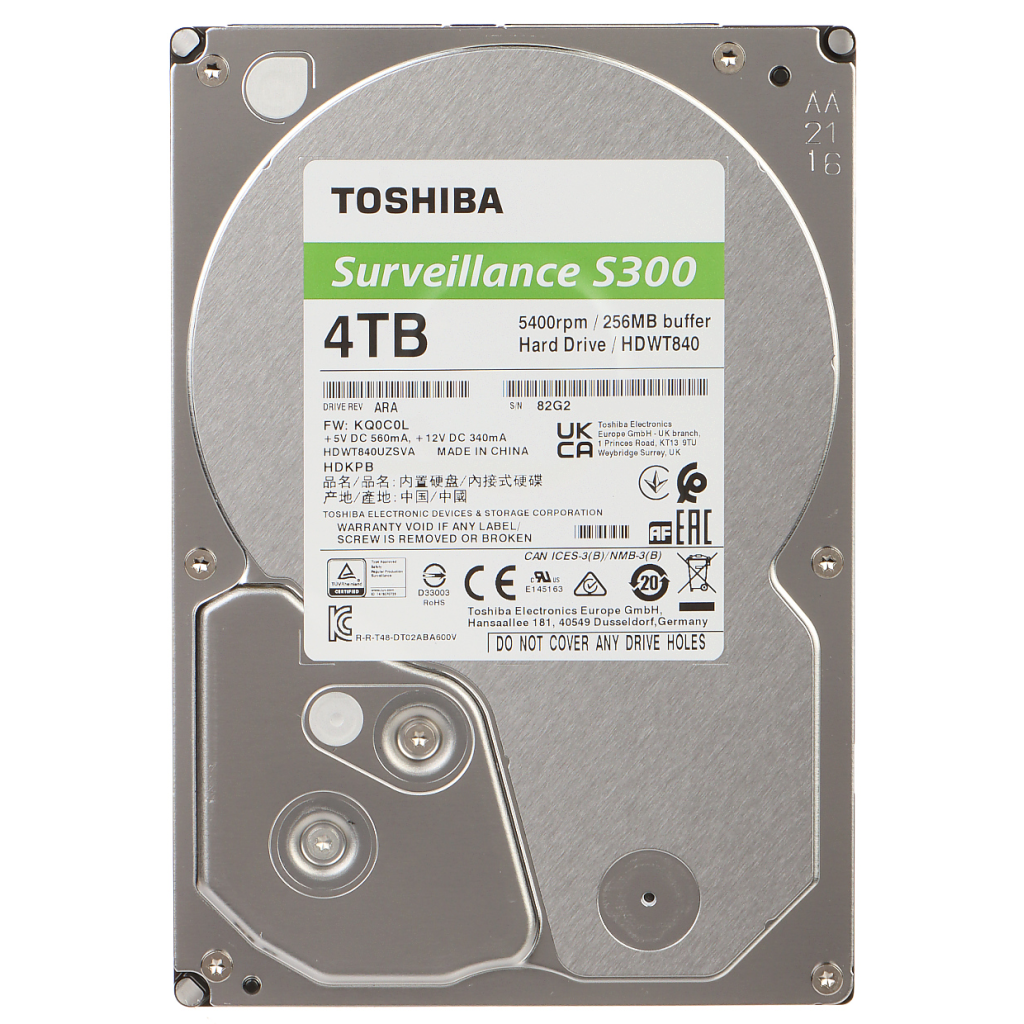 TOSHIBA S300, HDWT840UZSVA, 3.5", 4TB, 256Mb 5400 Rpm, 7/24 Guvenlik HDD (Turkiye Distributoru Garantili)
