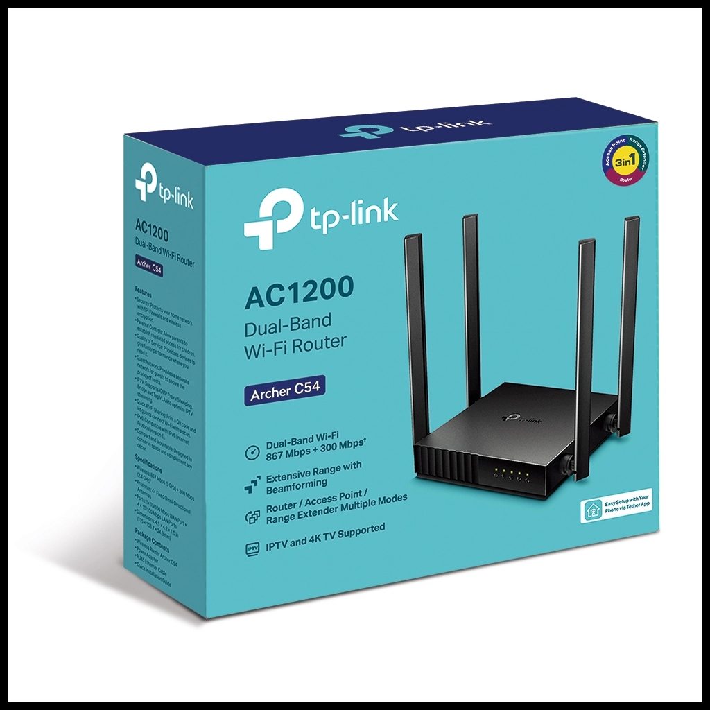 TP-LINK ARCHER C54, AC1200, 4Port, 1200Mbps, Dual Band WiFi, Masaustu, Megabit, Router, Access Point, Range Extender