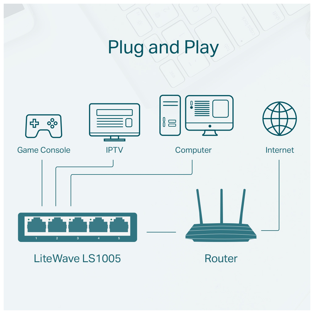 TP-LINK LS1005, Green Tech, 5 Port, MegaBit, Yonetilemez, Masaustu Switch