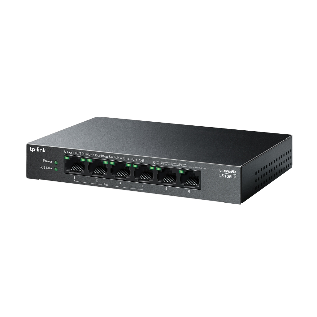 TP-LINK LS106LP, Green Tech, 6 Port, MegaBit, 4 Port PoE 41W, Metal Kasa, Yonetilemez, Masaustu Switch