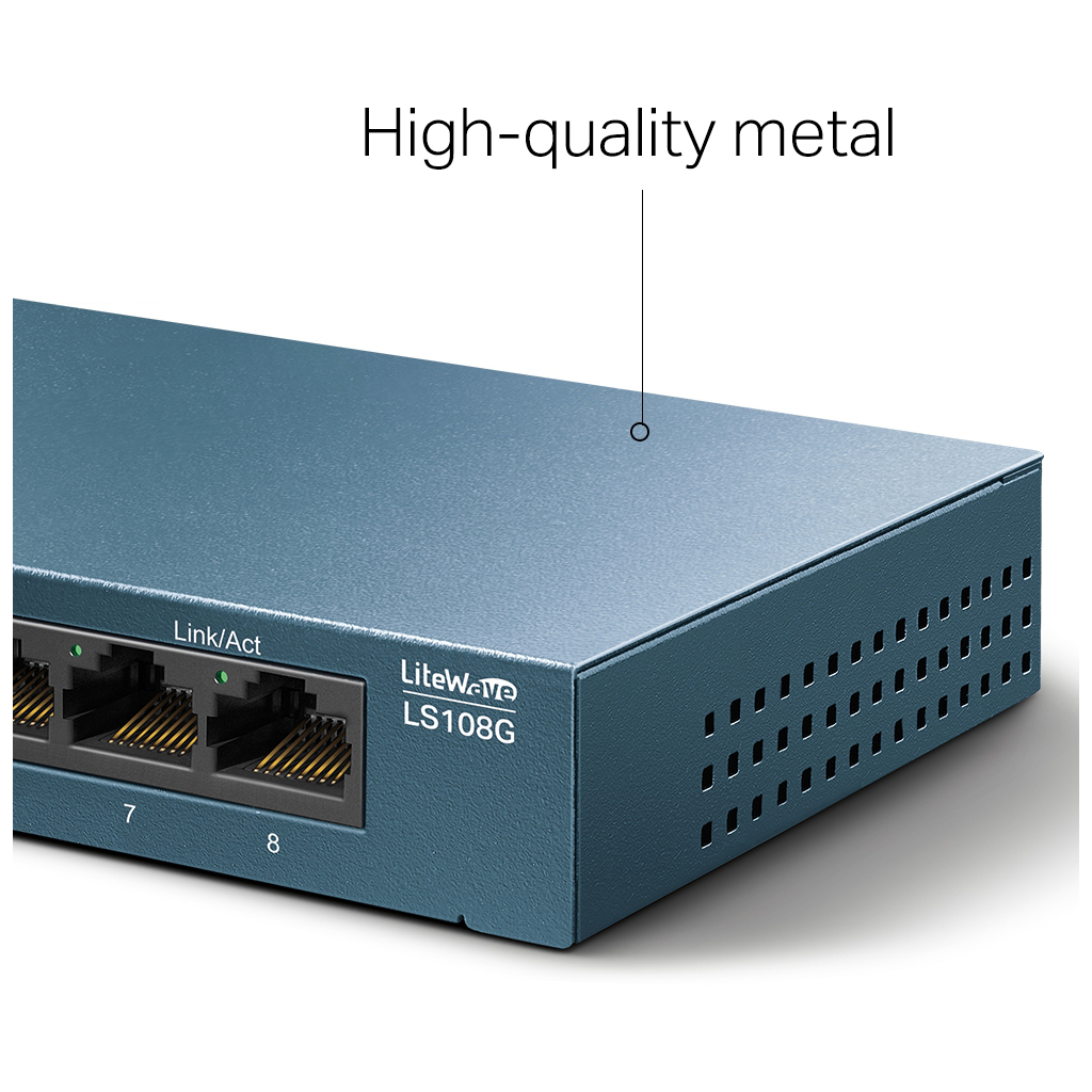 TP-LINK LS108G, Green Tech, 8 Port GigaBit, Yonetilemez, Metal Kasa, Masaustu Switch