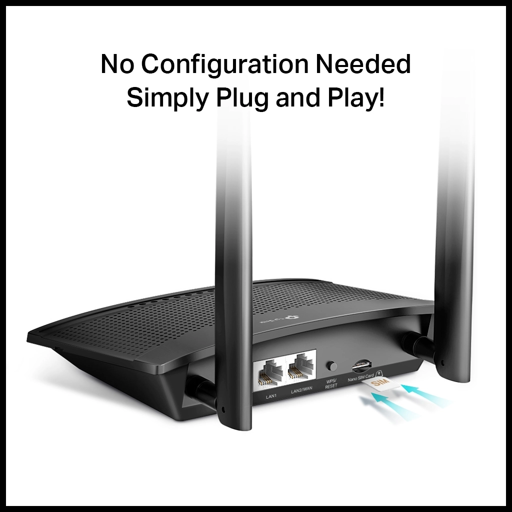 TP-LINK TL-MR100, 2Port, 300Mbps, 2,4Ghz Wifi, Masaustu, LTE Micro Sim Kart Takilabilir 3G-4G Destekli Router