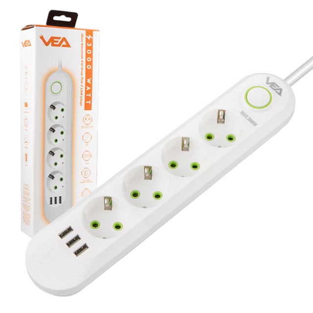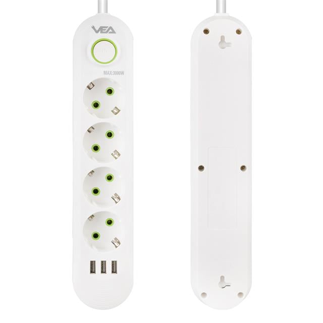 Vea Va-21560 4'lü 3 Usb'li 1.5 Metre Akım Korumalı Priz Beyaz
