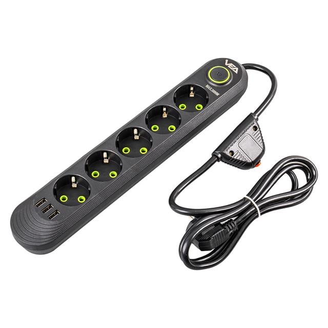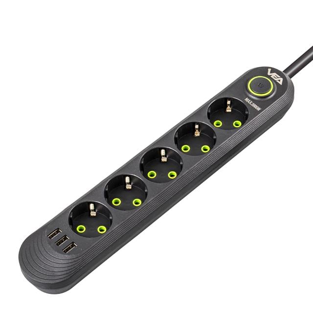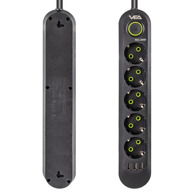 Vea Va-21561 5'li 3 Usb'li 1.5 Metre Akım Korumalı Priz Siyah