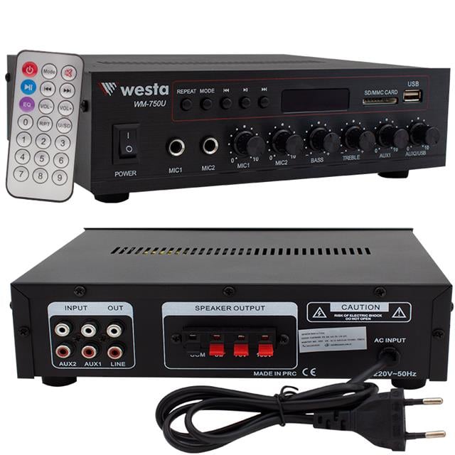 Westa Wm-750u 80 Watt 100v-70v Mini 4-16 Ohm Usb-sd-bluetooth 2 Mikrofon Girişli Trafolu Anfi