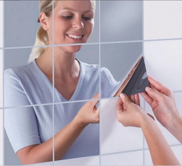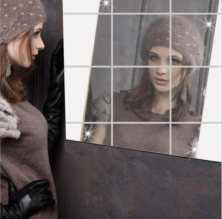 Yapışkanlı Dekoratif Folyo Ayna Kare ( 9 Adet ) Makyaj Aynası
