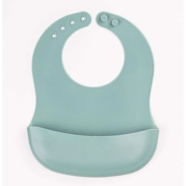 Yeşil 3’lü Silikon Yemek Seti – Önlük + Diş Kaşıyıcılı Kaşık + Vakumlu Tabak