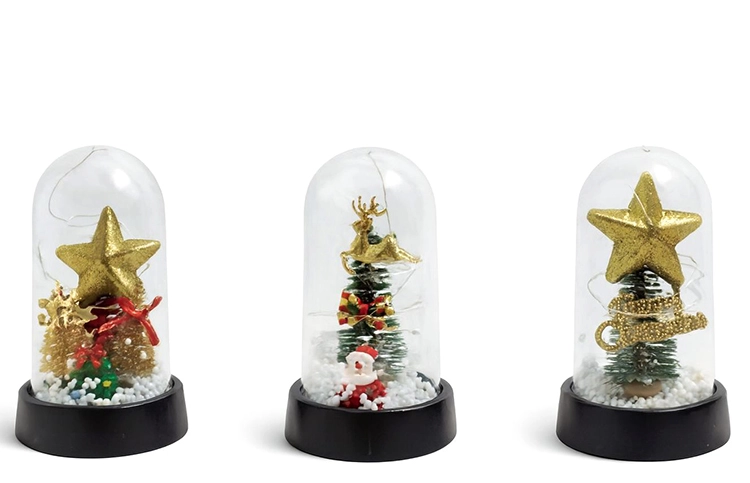 Yılbaşı Temalı Işıklı Dekoratif Cam Fanus